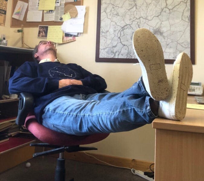 “If you’re a bit down because you’re doing actual work at work lately, what do you usually do there.”